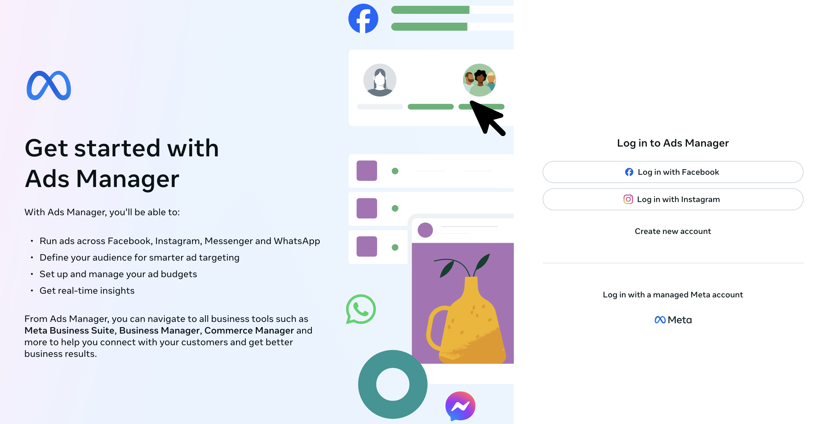 Login to Meta Ads Manager and start a new ad campaign