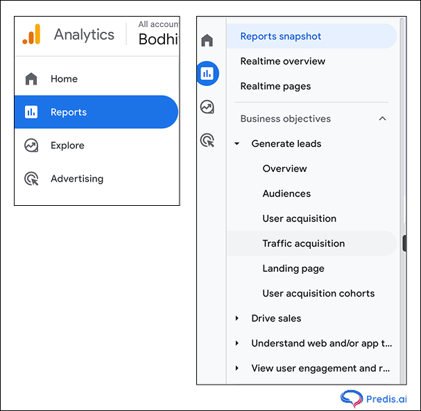- Open GA4 and go to Reports > Acquisition > Traffic Acquisition.