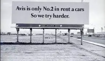 By admitting that “Avis is only No.2 in rent a cars,” the brand turned its lack of market dominance into a promise. This showed their commitment; they cannot afford to be complacent, unlike the industry leader.